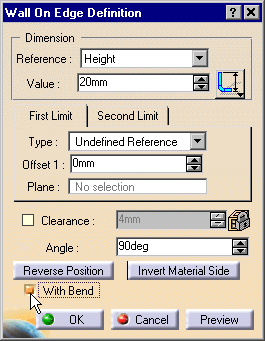 - If you create a bend as part of a Wall on Edge, CATIA considers this a child of the node and displays it as that in the Specification Tree. Be careful when doing this. Changing an edge causes CATIA to update all the geometry, which could produce errors.