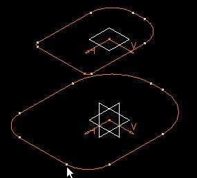 9. In the bottom sketch, pick a second vertex to define the opposite end of the opening line. It must be located on the corresponding edge.
