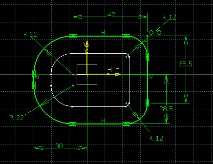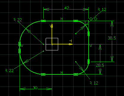 3. Pick a plane and create the first hopper profile using lines, circles, or arcs.