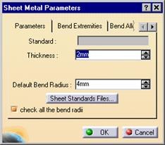2. Define your sheet metal parameters.
