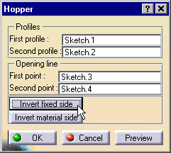 - The term "opening line" in CATIA refers to the seam where the sheet metal joins to form the hopper; it is also the line from which the part unfolds.