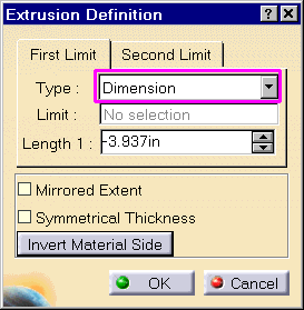 The Extrusion Type options define the length and type of the extrusion.
