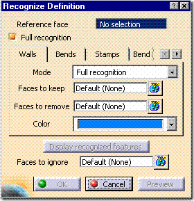 3. Select Insert | Recognize. CATIA displays the Recognize Definition dialog. (Notice Full Recognition is pre-selected since walls will be recognized regardless.)