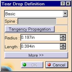 1. Select Insert | Swept Walls | Tear Drop to display the Tear Drop Definition dialog.